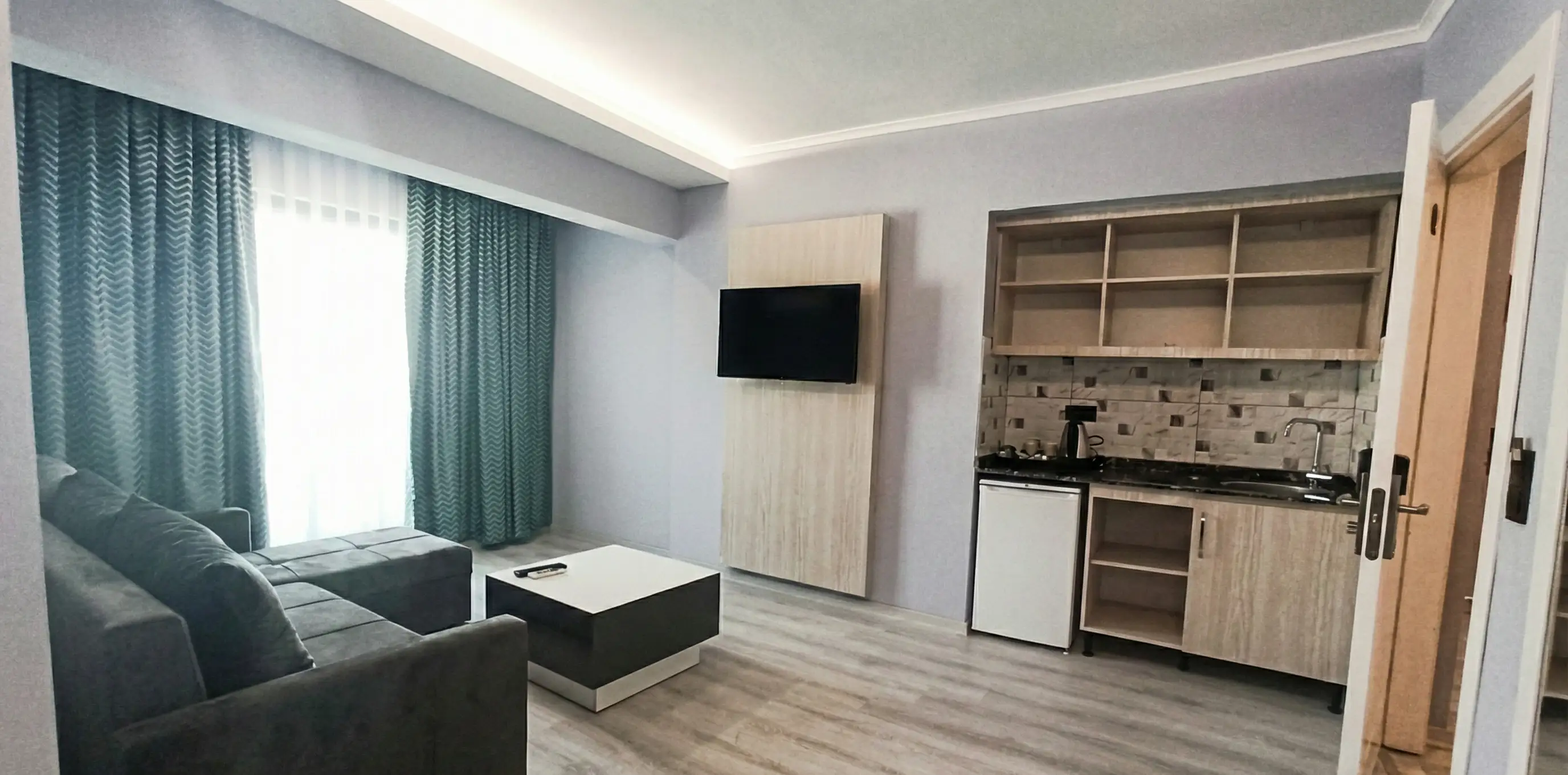 Geniş yaşam alanı, ayrı oturma bölümü ve lüks detaylarıyla ev konforunda prestijli bir konaklama.
